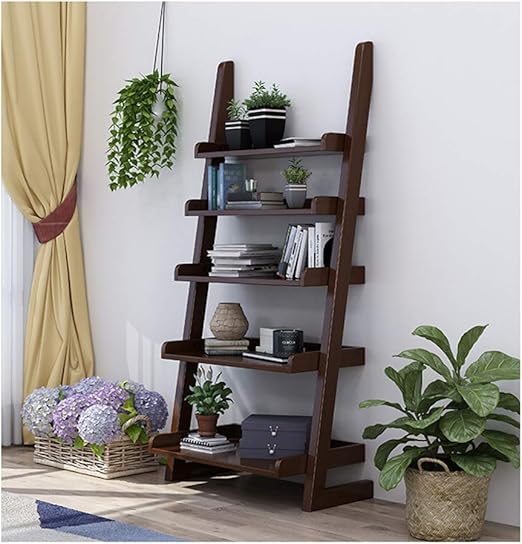 4 Tier Bookcase Bookshelf Leaning Wall Shelf Ladder Storage