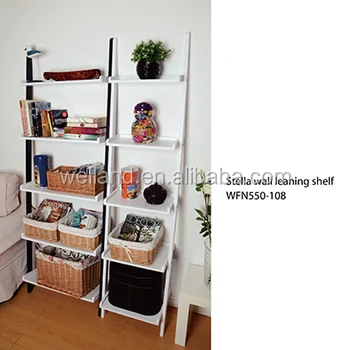 New Modern Ladder Bookshelf Bookcase Leaning Ladder Wall Shelf