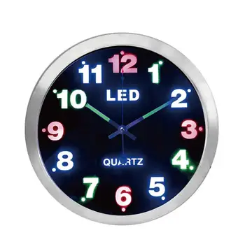 12 Inch Fashion Metal Digital Colorful Led Home Decor Wall Clock