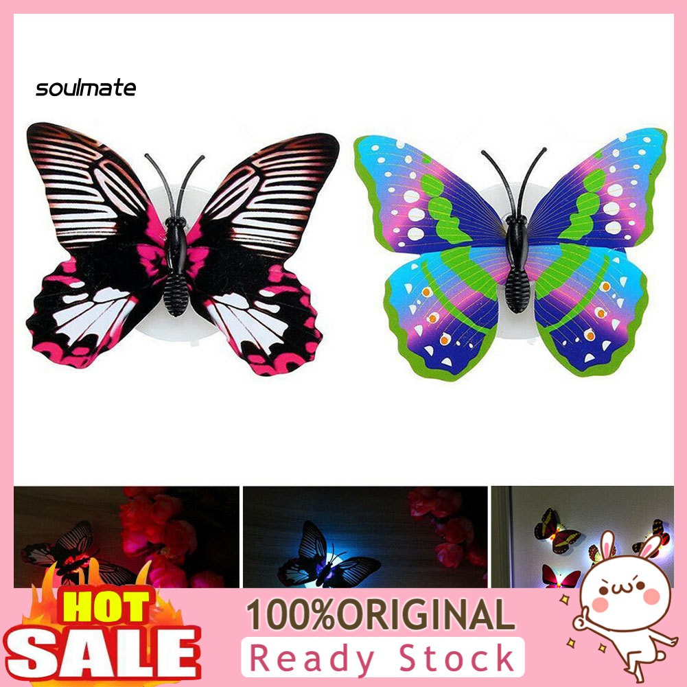 Sou 2pcs Color Changing Butterfly Led Night Light Wall Lamp Bedroom Kids Room Decor Shopee Indonesia