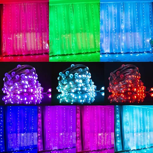 Amazon Com Led Multi Color Curtain String Lights Remote Control 16color Changing Window Curtain Lights Backdrop Wall Lights For Wedding Party Bedroom Christmas Decor Rgb Copper Wire Curtain Lights Home Kitchen