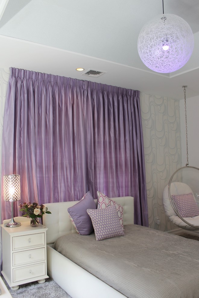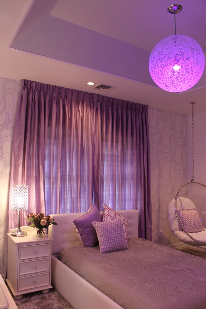 Led Color Changing Lighting With Purple Glow Midcentury Bedroom New York By Habitech Planning Design Inc