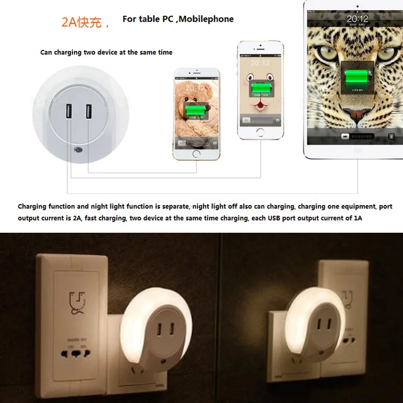 Bu Plug Led Light Sensor Dual Usb Charger Night Light Wall Plate