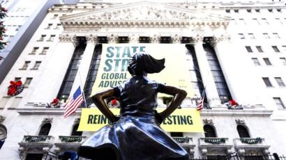 Fund manager state street to push companies to put women on their boards in the financial district in. On wall street near the new york stock exchange by the. It really does have a great look all the laws of mass and motion aside you feel. A camera man films a statue of a girl facing the wall st.