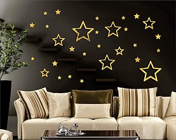 Buy Wall1ders Star Golden Pack Of 30 3d Acrylic Mirror Wall