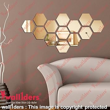 Buy Wall1ders 13 Hexagon Golden 3d Acrylic Mirror Wall Stickers