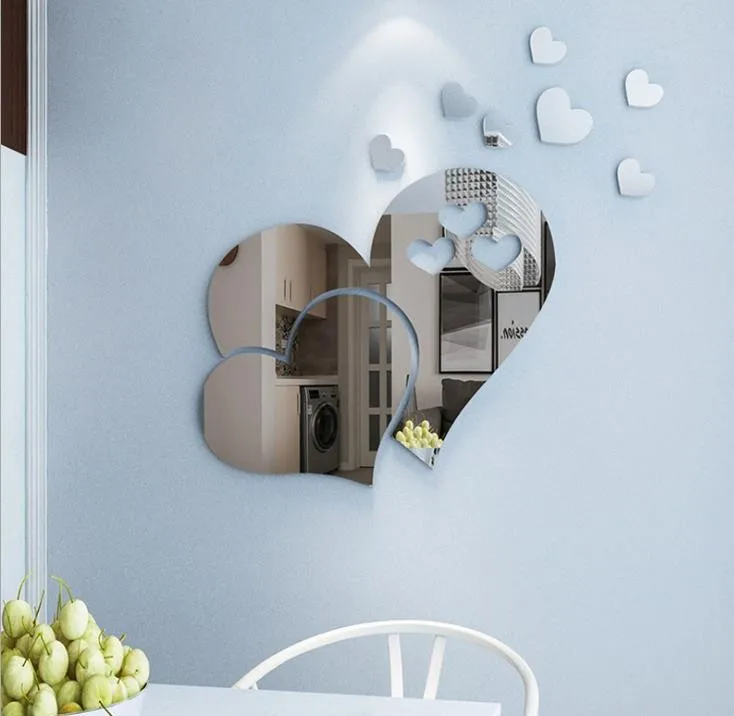 3d Acrylic Mirror Wall Sticker Heart Shape Creative Mirrors