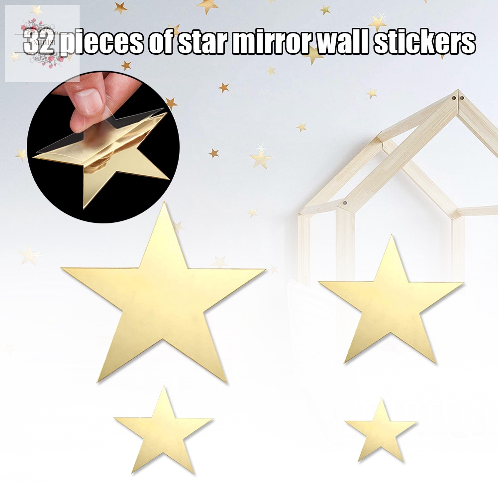 32pcs Removable Star Mirror Stickers Wall Stickers Decal For Home