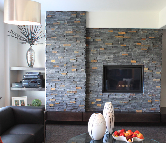 Stone Veneer Fireplace Modern Living Room Baltimore By