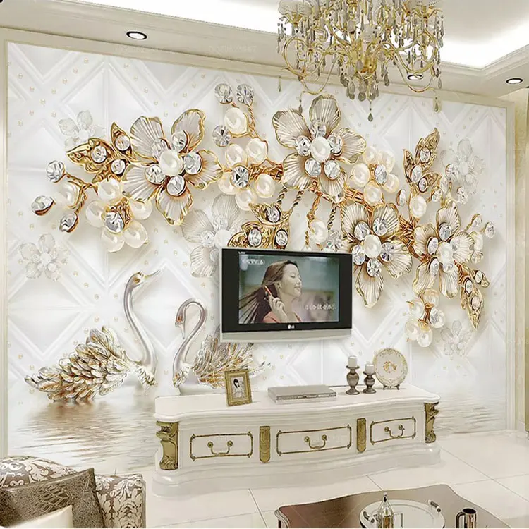 Custom 3d Wall Mural European Style Luxury 3d Relief Pearl Jewelry