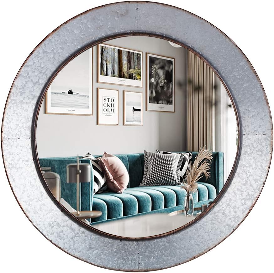 Amazon Com Fenori Galvanized Industrial Circle Mirror For Wall