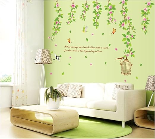 Amazon Com Bestgrew Green Tree Branch Vine And Flying Birds Wall