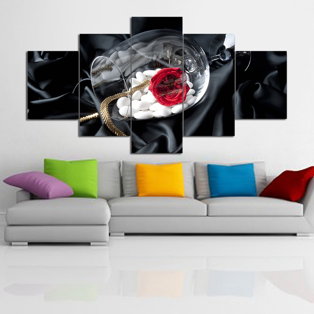 Walfront Cup Of Roses Painting Canvas 5 Panels Printed Picture Wall Art Home Office Bedroom Decor Wall Art Canvas Wall Art Walmart Canada