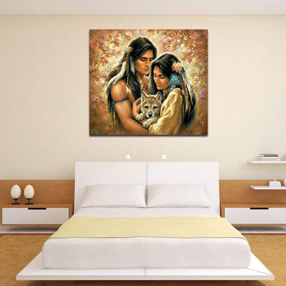 Indian Man Woman Wolf Frameless Wall Painting Living Room Bedroom