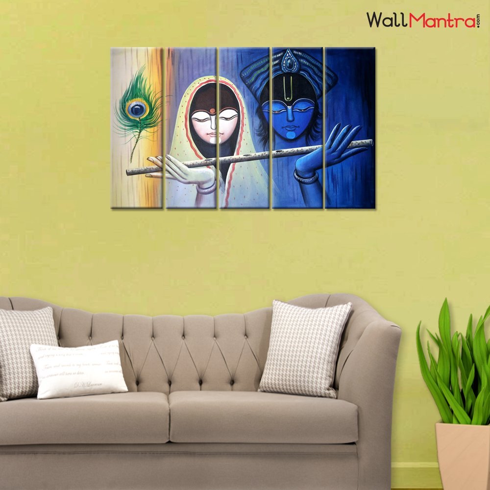 Wallmantra Radha Krishna Indian Spiritual Wall Painting 5 Pieces