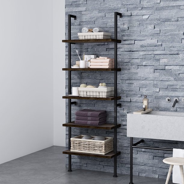 Ladder Shelf 5 Tier Bookshelf Rack Leaning Wall Shelf For Living