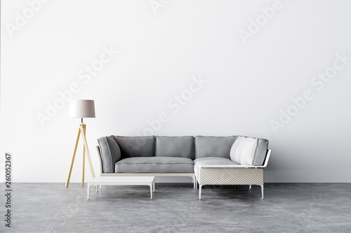 Modern Sofa On Background Of White Wall Clipart K59868735