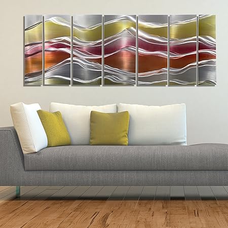 Large Silver Painting With Blush Pink Orange And Yellow Gold Tones In Abstract Mountain Like Pattern Metal Art Hanging Wall Art Contemporary Abstract Decor Sierra In Bloom By Jon Allen Amazon Co Uk