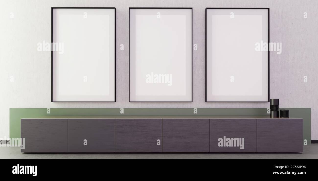 Mock Up Posterwall In Luxury Modern Living Room Interior Stock