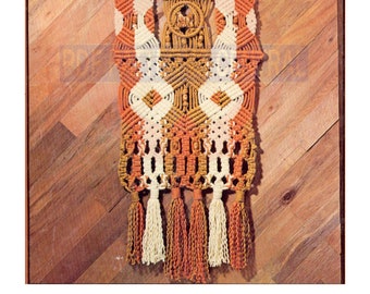 1970s Aztec Scroll Macrame Wall Hanging Pattern Instant Download