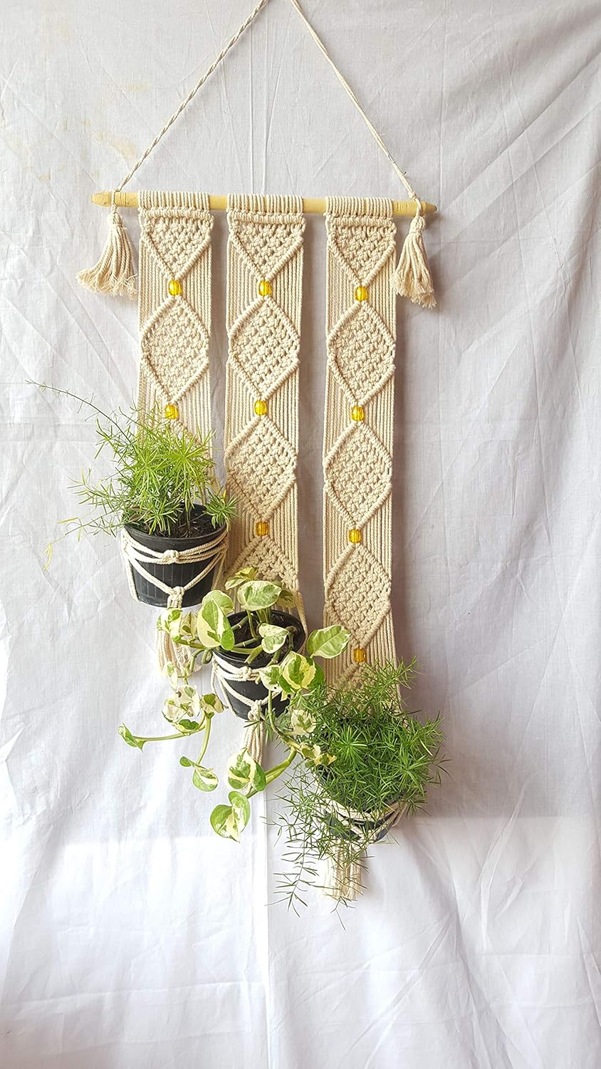 Diamond Triple Plant Hanger Small Macrame Wall Hanging Plant Holder Home Decor Hanging Plant Holder Macrame Plant Hanger Plant Hanger
