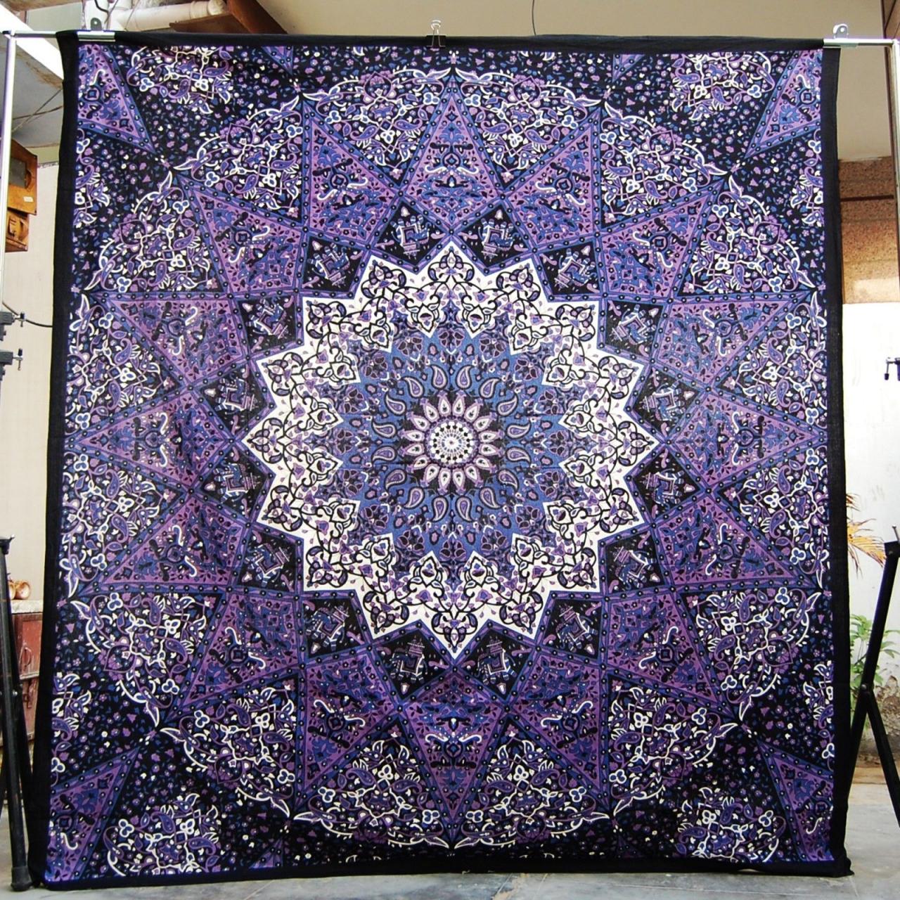Indian Mandala Wall Hanging Tapestries Queen Cotton Bedspread