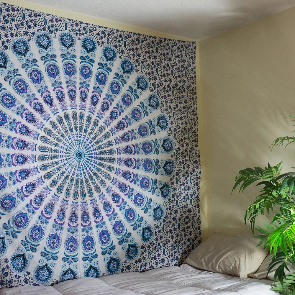 Aamiraa Hippie Blue Peacock Mandala Tapestry Bohemian Wall Hanging