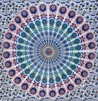 Blue Green Indian Hippie Tapestry Mandala Wall Hanging Throw At