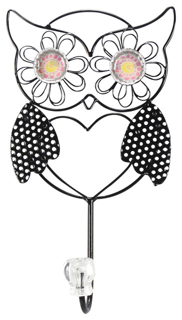 Wise Whimsical Black Owl With Pink Eyes 10 Inch Metal Wall Single