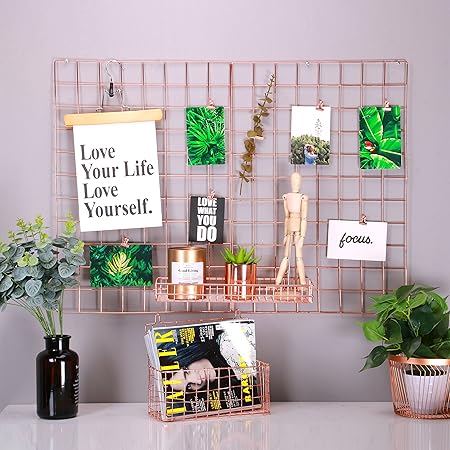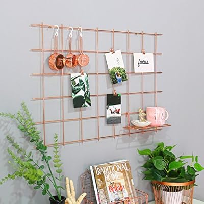 Wall Decor Rumcent Rose Gold Gridwall Photo Display Metal Mesh