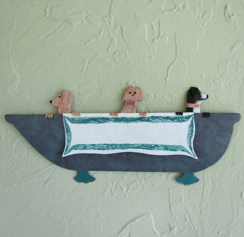 Bathtub Bathroom Decor Metal Wall Art Doggy Decor Three Dogs Etsy