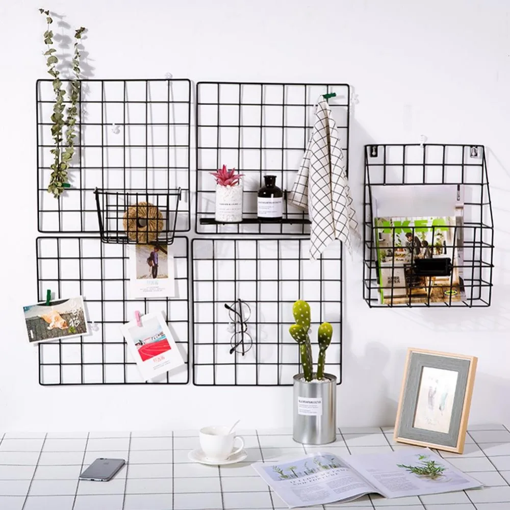 Multi Function Iron Metal Grid Decor Photo Frame Wall Art Display Mesh Storage Shelf Organizer Rack Holder Hanging Wall Decor Frames On Wall Photo Frame Wall