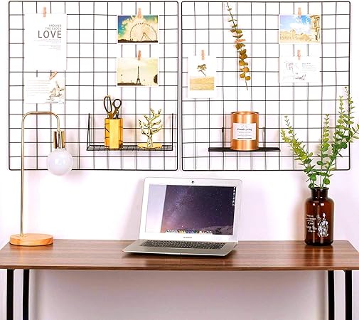 Home Kitchen Decorative Accessories Multifunction Metal Mesh Set Of 2 Grid Panel Wall Grid Wall Decor Mesh Grid Panel Photo Wall Hanging Display And Wall Home Decorations Iron Wall Photo Grid