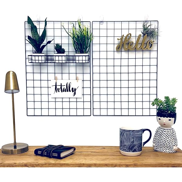 Amazon Com Gbyan 2 Pack Wall Grid Panels Photo Display Multifunctional Wire Wall Organizer Iron Rack With Decoration Light For Hanging Pictures Small Plants 25 6 X17 7 Each Grid Panel