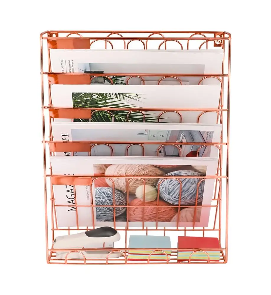 Office Metal Mesh Rose Gold Wall Organizer 5tier Wall Mounted