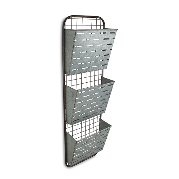 Metal Wall Organizer Galvanized 3 Bin Industrial Vinnymo