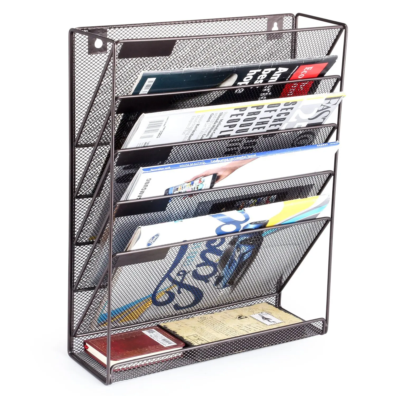 Wall Mount File Organizer Holder 5 Pocket Metal Mesh Hanging