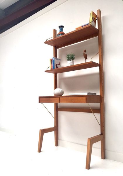 Incredible Mid Century Modern Shelving Unit Danish Wall Desk In