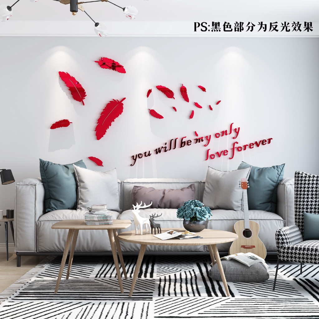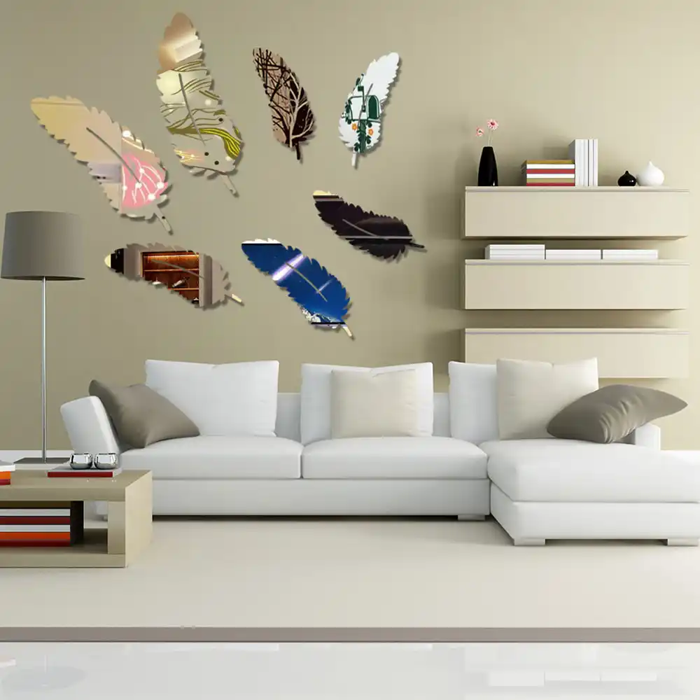 Ready Stock Feather Acrylic 3d Mirror Stereo Wall Stickers