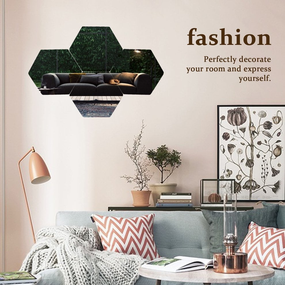 12pcs Removable Living Room Bedroom Mirror Diy Art Hexagonal Shape
