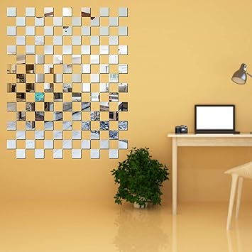 Walfront 25pcs Diy Square Mirror Wall Stickers 15cm Self