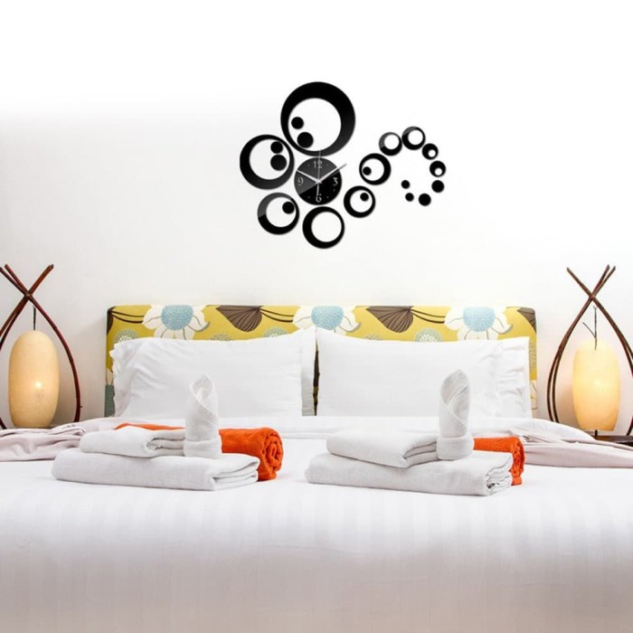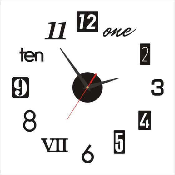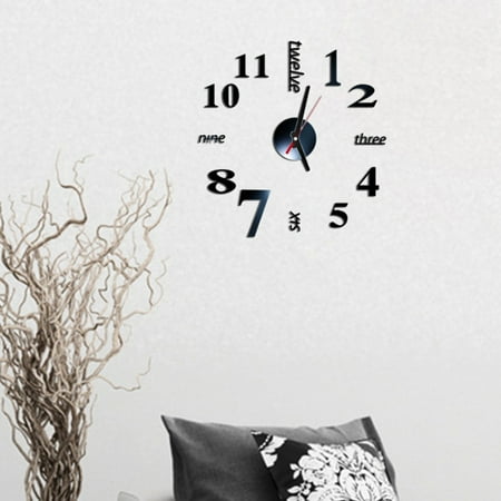 One Size Black Modern Diy Wall Clock Self Adhesive Interior Small