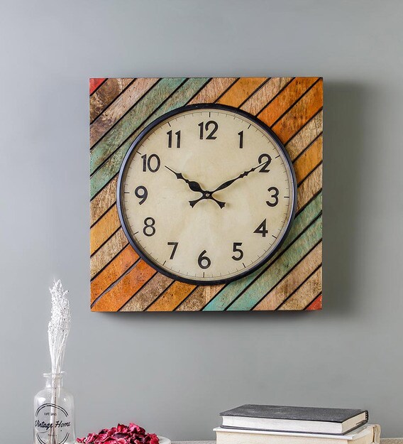 Buy Multicolour Wood Wall Clock By Fabuliv Online Modern Wall