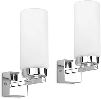 Pair Of Modern Chrome Bathroom Wall Lights With Frosted Glass