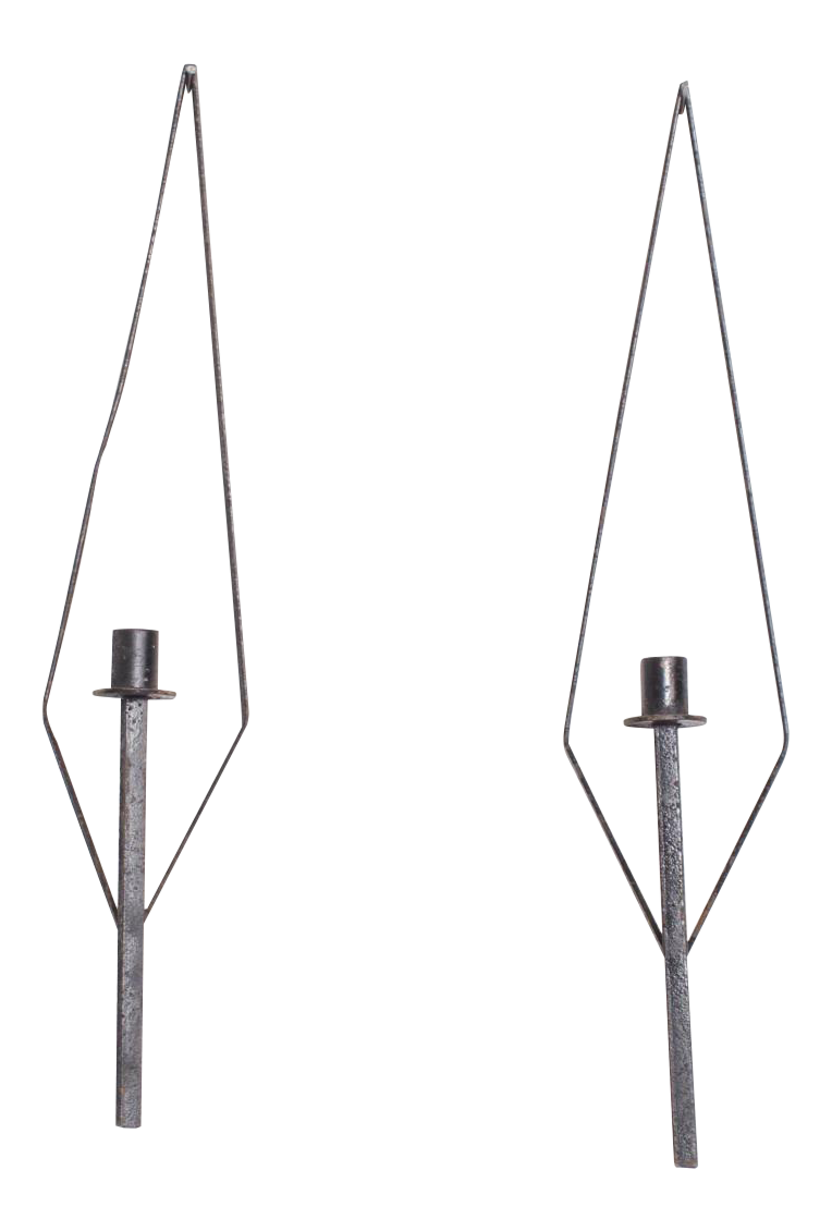 Mid Century Modern Vintage Sculptural Iron Wall Sconce Taper Candle Holders Chairish