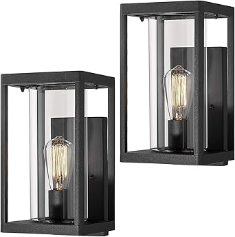 Amazon Com Beionxii Outdoor Wall Lights 2 Pack Modern Exterior Wall Sconces Porch Lantern Sand Textured Black Cast Aluminum With Clear Cylinder Glass A291w 2pk Home Improvement