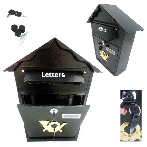 Black Wall Mounted Mailbox Large 18 Vertical Locking Drop Mail
