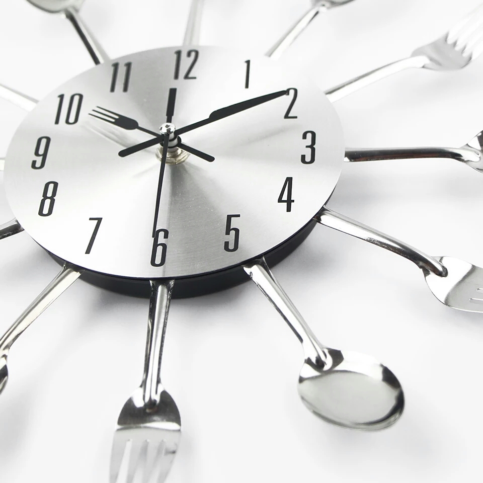 Cutlery Metal Kitchen Wall Clock Spoon Fork Creative Clocks Modern
