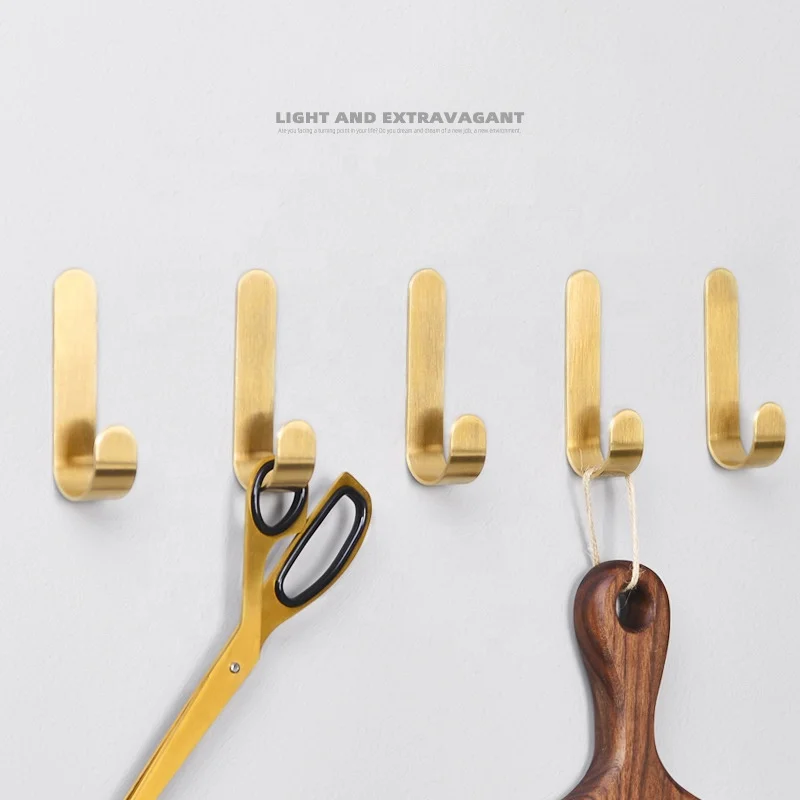 Wall Mount Hook Kitchen Modern Brass Decorative J Self Adhesive