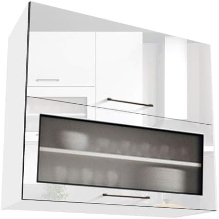 White High Gloss Glass Glass Wall Kitchen Cabinet 80cm Cupboard 2